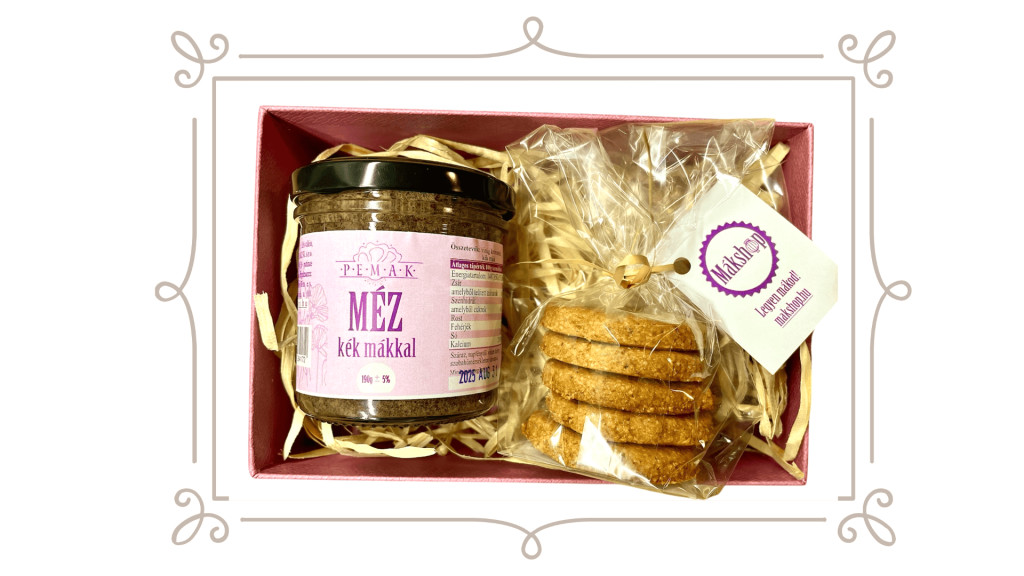 Dolce vita ajándékcsomag fehér mákos méz kék mákos tallérral díszdobozban